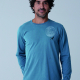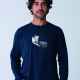 Camiseta de manga larga en verde safari con estampado exclusivo «Stay Wild Stay Free» y bosque de pinos. Fabricada en 100% algodón orgánico con tratamiento pigment dyed que evoca la libertad de la naturaleza mediterránea.