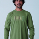 Camiseta masculina de manga larga en azul egeo con estampado exclusivo del diseño LUNA que representa a un escalador conquistando la superficie lunar, simbolizando los sueños más ambiciosos. Fabricada en 100% algodón orgánico con tratamiento pigment dyed que evoca las aventuras más ambiciosas bajo el cielo mediterráneo.